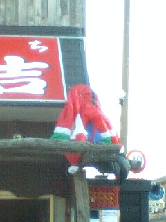 本物サンタが置いたプレゼントをとりに行って屋根に引っかかったのかも・・・。