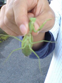 かまきりさんが先にチャリに乗ってました。